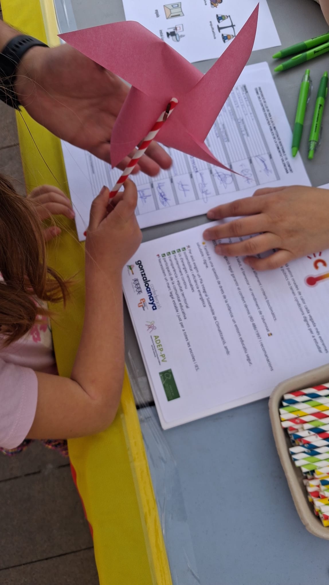 D’una altra banda, l’AFA va participar aquest dissabte, com ja és tradició, en la Festa per la Llengua que organitza anualment Escola Valenciana. Enguany la Trobada va tindre lloc a Vila-real. L’AFA de l’Enriqueta Agut va proposar una activitat de muntatge d’un voladoret. Aquest element és el símbol de la nostra escola perquè representa la infantesa lliure i plena de vida. Miquel Peris,mestre de l’escola, el feia aparèixer en els seus poemes com a imatge dels xiquets i les xiquetes que creixen, es transformen i descobreixen el món.