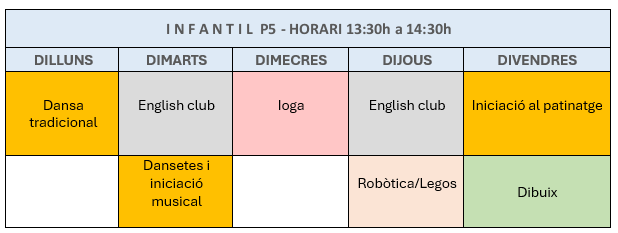 - Activitat de 1 dia (excepte Robòtica): 14 ā¬/mes